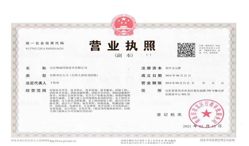 山東博通環(huán)保技術(shù)有限公司是一家專業(yè)從事環(huán)保、安全、消防的多元化技術(shù)服務(wù)公司,公司致力于打造專業(yè)的技術(shù)服務(wù)團(tuán)隊(duì),立足青島,輻射山東,服務(wù)范圍涵蓋:環(huán)保技術(shù)開(kāi)發(fā)、技術(shù)轉(zhuǎn)讓、技術(shù)咨詢、技術(shù)服務(wù);環(huán)保工程;消防技術(shù)咨詢;消防設(shè)施檢測(cè);消防安全評(píng)估;消防設(shè)施維護(hù)保養(yǎng);環(huán)境應(yīng)急預(yù)案咨詢;安全生產(chǎn)標(biāo)準(zhǔn)化咨詢;場(chǎng)地環(huán)境調(diào)查報(bào)告編制,土壤與地下水環(huán)境調(diào)查及風(fēng)險(xiǎn)評(píng)估,水土保持方案編制,水土保持過(guò)程監(jiān)測(cè),水土保持驗(yàn)收工程,排污許可申報(bào)代理,清潔生產(chǎn)審核;批發(fā)零售:環(huán)保設(shè)備、機(jī)械設(shè)備與配件、消防設(shè)備、儀器儀表、五金建材、化學(xué)試劑(不含危險(xiǎn)品)。公司具有“建設(shè)手續(xù)一站式辦理,安環(huán)問(wèn)題一條龍解決”的獨(dú)特優(yōu)勢(shì),可為客戶提供高效、優(yōu)質(zhì)的安全、環(huán)保、消防管家技術(shù)服務(wù)。